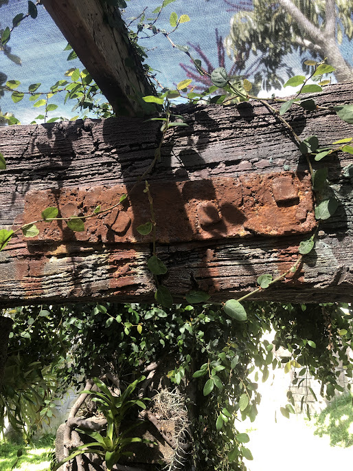 Rusting tells us this is a piece of metal banding. Even though it is concrete the coloring tells us it is metal.